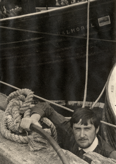 John Bellany was born in 1942 during the Second World War. His childhood was embedded in the secure warmth of the close-knit fishing communities of Port Seton and Eyemouth on the shores of the Firth of Forth in Scotland in which the Calvinist faith was the guiding light. All of his family life revolved round the church and the harbour and all of it would inform his spirit and vision. He was brought up to be in awe of the power of God upon whose mercy depended the daily survival of the fishermen at sea. As he grew older he would however become aware of another dimension to the life around him, one that co-existed but pulled away from the constraints of the Church. The hedonistic love of life and the call of the secular pleasures it promised.