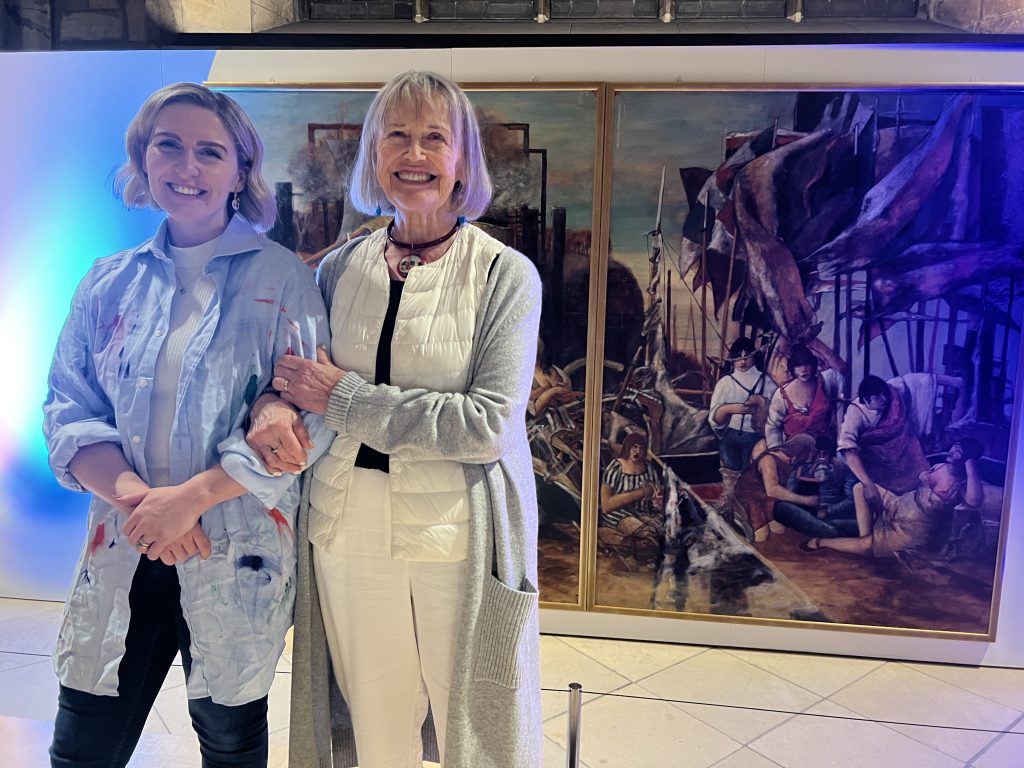This last summer of 2025, the painting was exhibited for several months within St Giles Cathedral where John’s funeral had been held twelve years previously. This tribute was paid to him in conjunction with the concurrent critically acclaimed exhibition of his Self Portraits at the City Arts Centre Edinburgh. A special event accompanying this in St Giles was a concert performed by Stephanie Legg, a young saxophonist and her group, playing music she had composed inspired by John’s work.